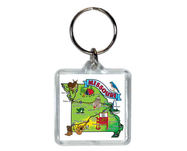 Collectible Missouri souvenir Show where you go and where you’ve been with a great state pride lucite keychain. 12 pieces in inner pack 144 per case.
