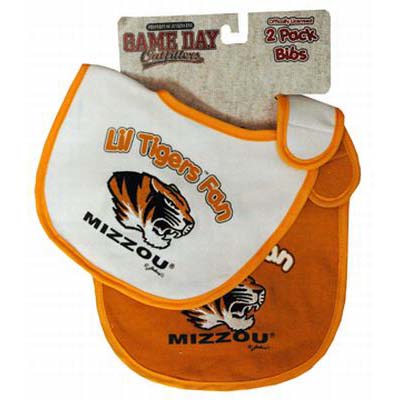 Officially Licensed Product. Missouri Tigers Perfect baby shower gift! Two piece set with alternating team colors, embroidered logos, and velcro closures. Carded to hang. 6 pieces in an inner pack. 144 per case.