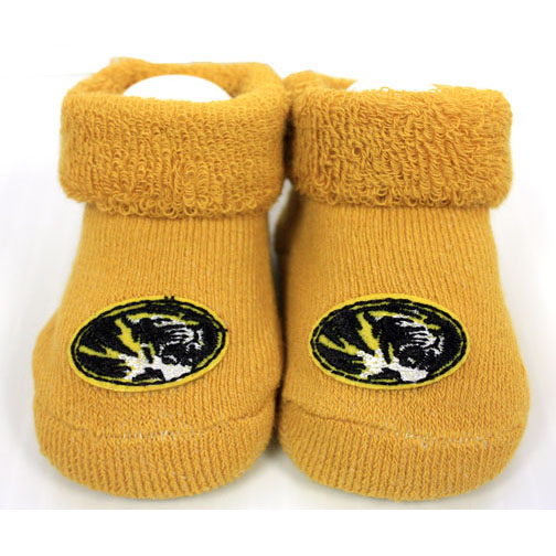 Officially Licensed Product. Missouri Tigers Perfect baby shower gift! OSFA soft infant booties with logo. Packed in clamshell for hanging or shelf. 12 pieces in an inner pack. 288 per case.