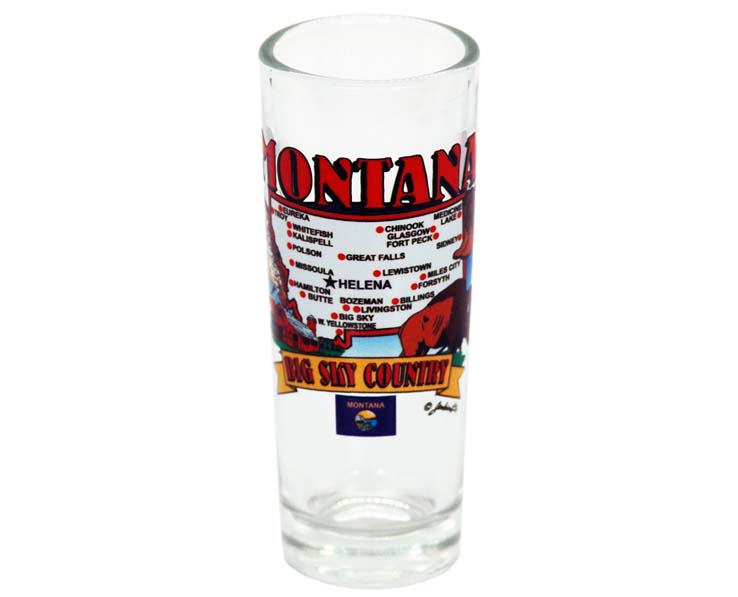 Collectible Montana souvenir 2 ounce glass shooter with classic state outline design. Best seller! 12 pieces in an inner 144 per case.