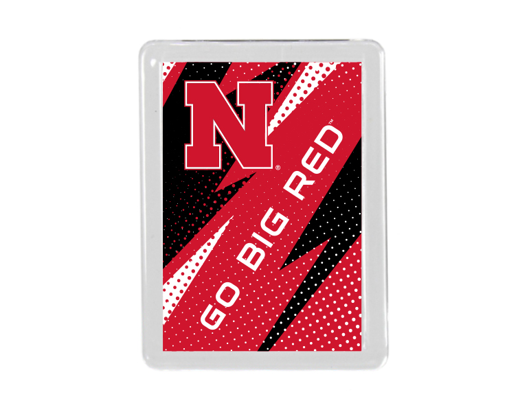 Officially Licensed Product. Nebraska Cornhuskers acrylic magnet with full color team logo graphic. Measures 1 5/8 x 2 /18 inches