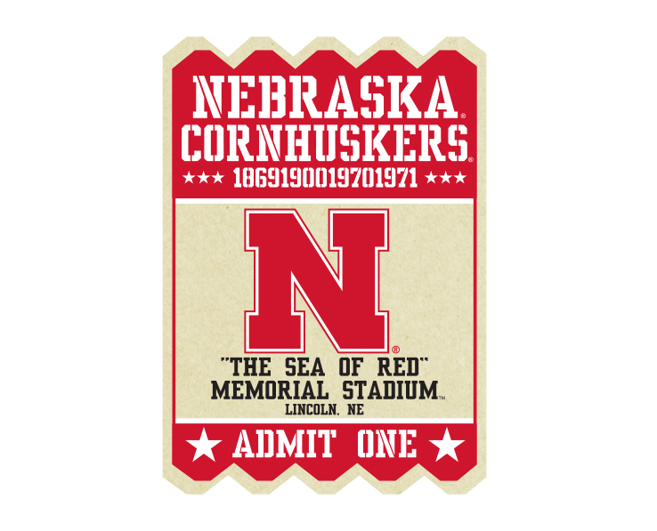 Officially Licensed Product. Nebraska Cornhuskers full color artwood magnet featuring our new Ticket Stub design
