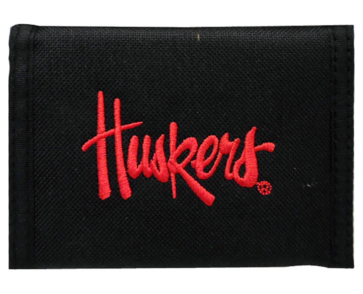 Officially Licensed Product. Nebraska Cornhuskers Men’s nylon billfold wallet. Featuring embroidered logo with hook and loop closure. 12 pieces in inner pack 360 per case.