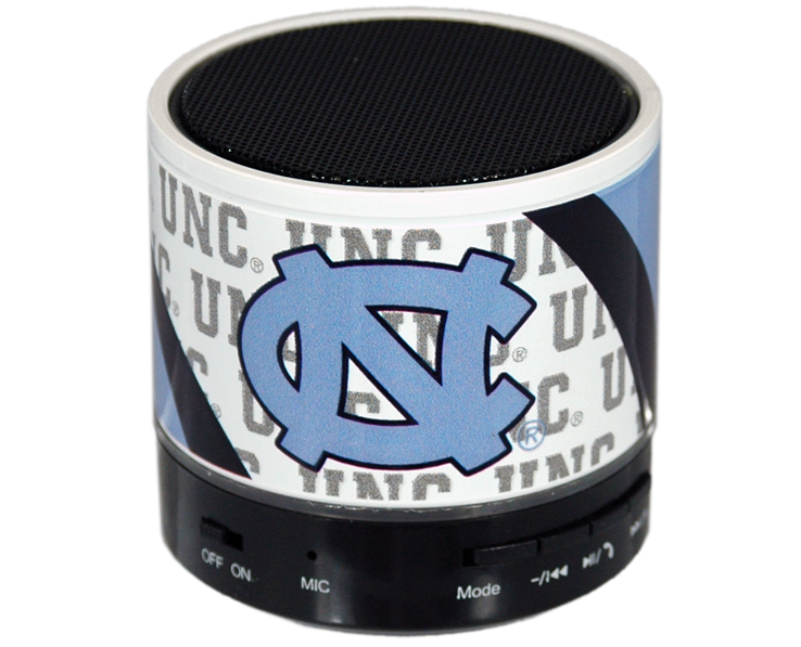 Officially Licensed Product. North Carolina Tar Heels Mini Bluetooth Speaker has full wrap around graphics. 3 watts of power that can be linked with other Gameday Outfitters bluetooth speakers for jaw dropping audio performance. Bluetooth connectivity up to 30 feet. 5 hours of play time and 2 hours to fully charge. 12 pieces in an inner 144 per case.