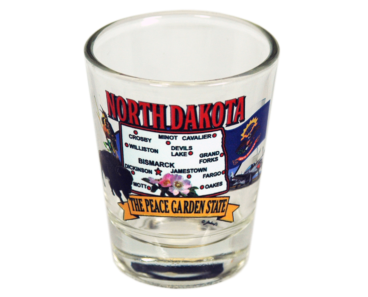 Collectible North Dakota souvenir 1.5 ounce collector’s glass with classic state outline design. Best seller! 12 pieces in an inner 144 per case.