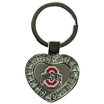 Officially Licensed Product. Ohio State Buckeyes Great heart shaped keychain with rhinestone edging, Engraved with enamel ink fill. 12 pieces in inner pack 144 per case.