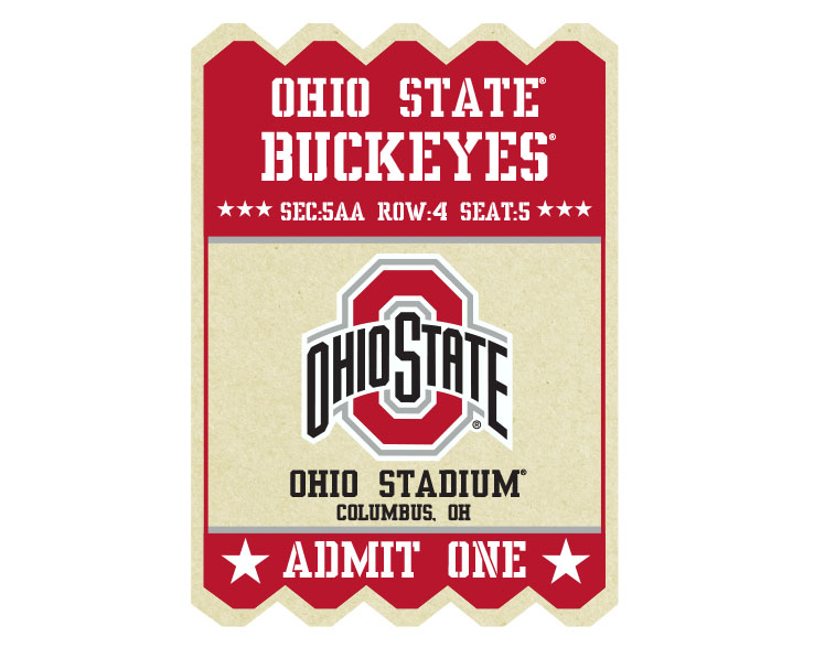 Officially Licensed Product. Ohio State Buckeyes full color artwood magnet featuring our new Ticket Stub design