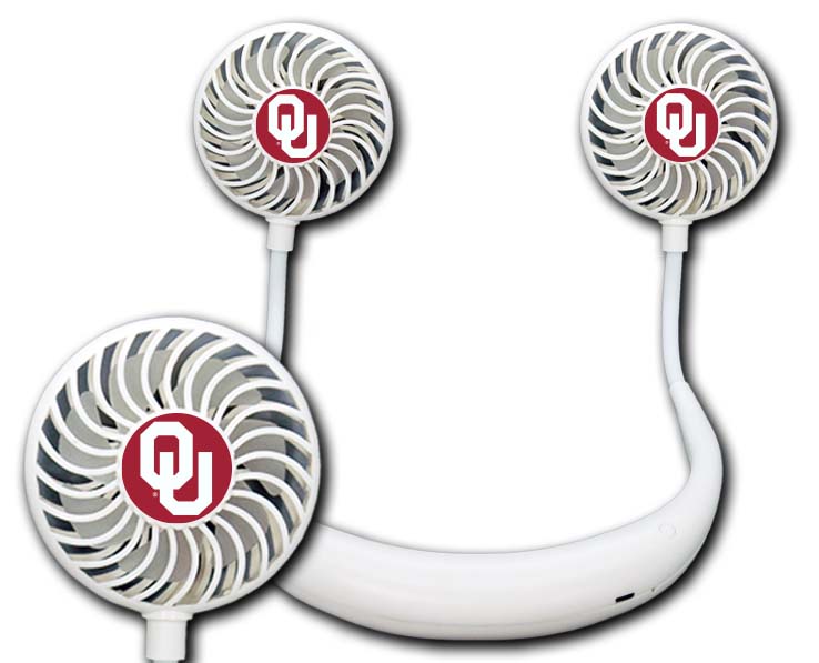 Officially Licensed Product. Oklahoma Sooners Stay cool and hands-free all summer with our new cordless wearable fan! Complete with a full color team logo on each fan, beating the heat will be a breeze. 12 pieces in an inner pack, 40 per case.