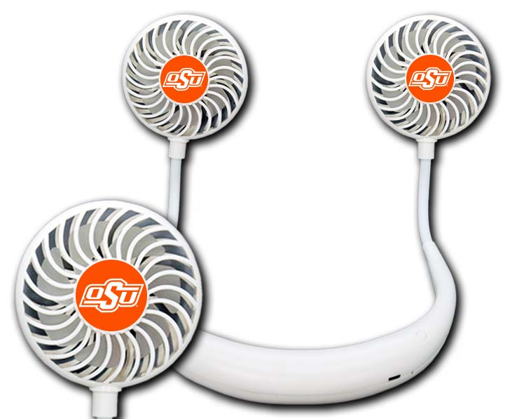 Officially Licensed Product. Oklahoma State Cowboys Stay cool and hands-free all summer with our new cordless wearable fan! Complete with a full color team logo on each fan, beating the heat will be a breeze. 12 pieces in an inner pack, 40 per case.