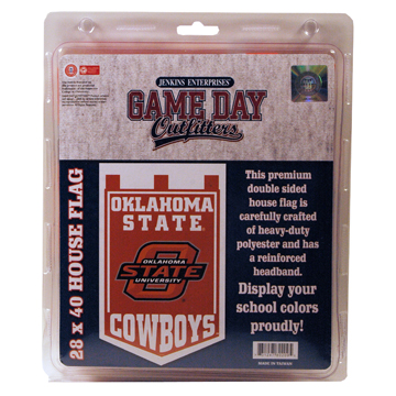 Officially Licensed Product. Oklahoma State Cowboys Perfect for display inside or out. This 28″ x 40″ tab top polyester banner is great for the garden or to decorate a team room or man cave. Packaged in a sealed clamshell. 6 pieces in an inner pack. 24 per case.