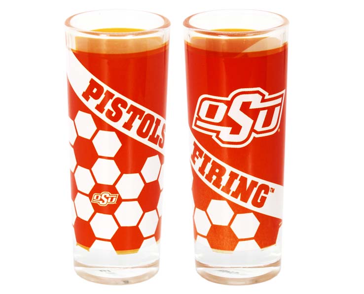 Officially Licensed Product. Oklahoma State Cowboys 2 ounce glass shooter with our all new honeycomb design featuring team slogan and logo. 12 pieces in an inner 144 per case.