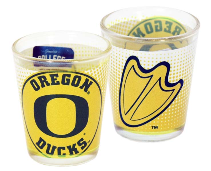 Officially Licensed Product. Oregon Ducks 2 ounce glass shooter with full color team logo. 12 pieces in an inner 144 per case.