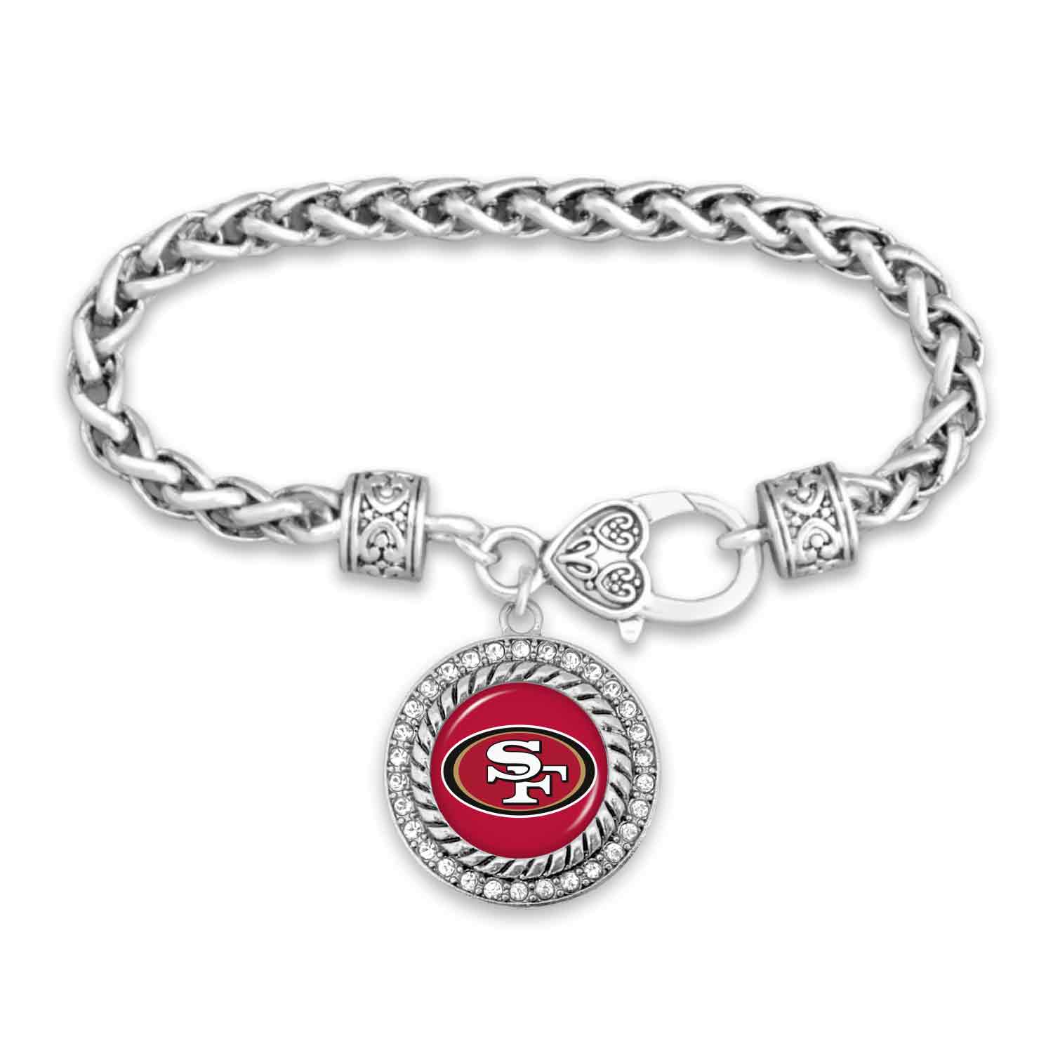 Officially Licensed Product. Get your San Francisco 49ers spirit on with stackable charm bracelets! Our Allie design features a braided chain band, designer clasp, and bedazzled 1 inch domed charm. Brand: Mojo Licensing