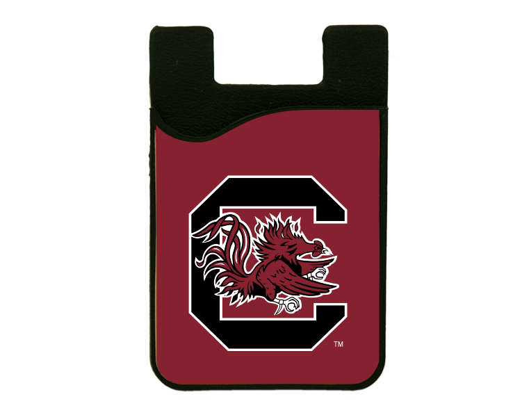 Officially Licensed Product. South Carolina Gamecocks Keep your ID and credit cards handy with this silicone and microfiber card holder. Adheres to the back of almost any cell phone. Front microfiber piece come off and serves as a screen cleaner. 12 pieces in inner pack 144 per case.