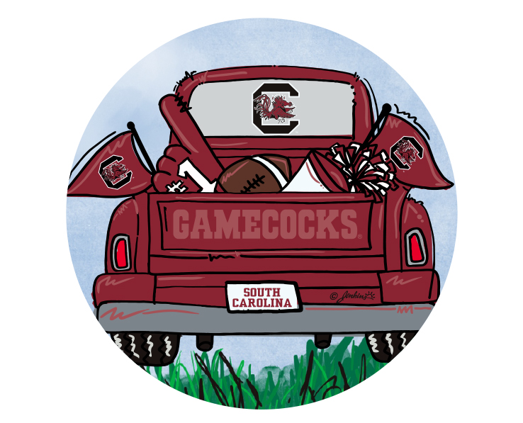 Officially Licensed Product. South Carolina Gamecocks full color artwood magnet featuring our best selling Tailgate truck design