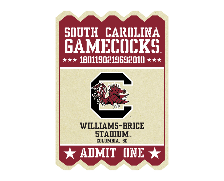 Officially Licensed Product. South Carolina Gamecocks full color artwood magnet featuring our new Ticket Stub design