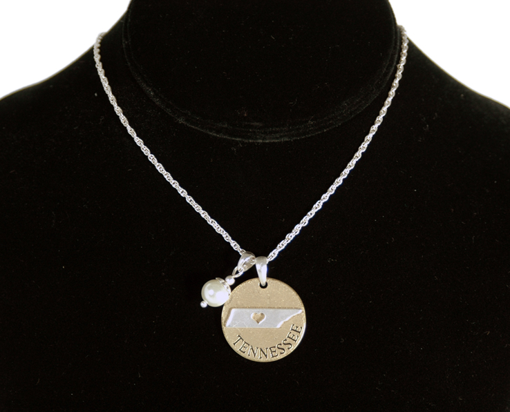 Collectible Tennessee souvenir Stylish 2 color silver and gold OSFA State Pride Necklace goes with any outfit and comes on a hang card. 12 pieces in inner pack 144 per case.