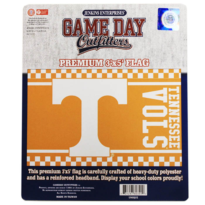 Officially Licensed Product. Tennessee Volunteers Perfect for display inside or out. This 3′ x 5′ polyester flag with grommets is great to run up a flag pole or to decorate a team room or man cave. Packaged in a sealed clamshell. 6 pieces in an inner pack. 60 per case.