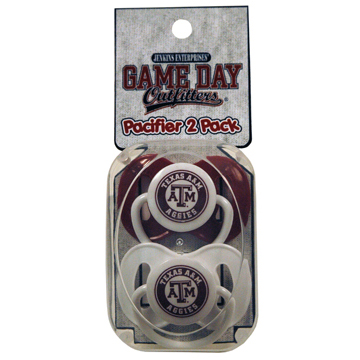 Officially Licensed Product. Texas A&M Aggies Perfect baby shower gift! Two pack of BPA free pacifiers. Packaged in handy reusable carry case. 12 pieces in an inner pack. 144 per case.