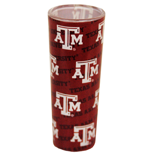 Officially Licensed Product. Texas A&M Aggies 2 ounce glass shooter features full color wrap around print. 12 pieces in an inner 144 per case.