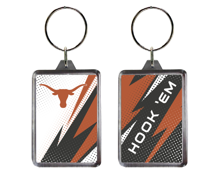 Officially Licensed Product. Texas Longhorns Eye-catching graphics enhance this durable lucite keychain featuring our new Lightning Bolt design