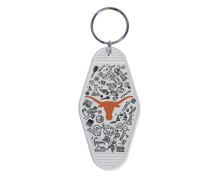 Officially Licensed Product. Texas Longhorns The retro motel key has a cool historic vibe and features our new Doodles design. Made from durable plastic.