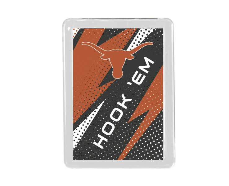 Officially Licensed Product. Texas Longhorns acrylic magnet with full color team logo graphic. Measures 1 5/8 x 2 /18 inches