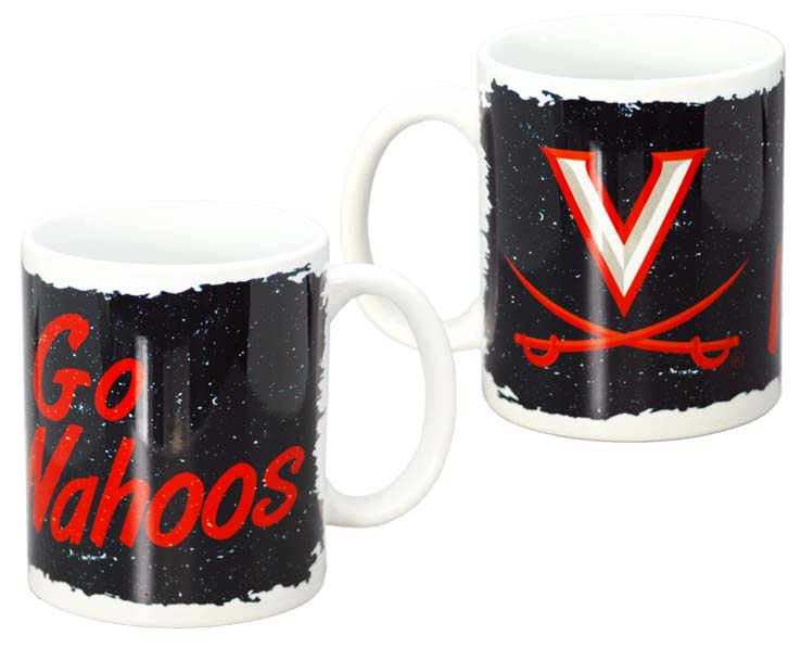 Officially Licensed Product. Virginia Cavaliers 11 ounce ceramic mug printed with our all new rugged torn design featuring team name and mascot. 6 pieces in an inner pack 36 per case.