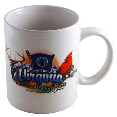 Collectible Virginia souvenir Classic art featuring 3 state elements on this 11 ounce ceramic mug make it a winner. 6 pieces in an inner pack 36 per case.