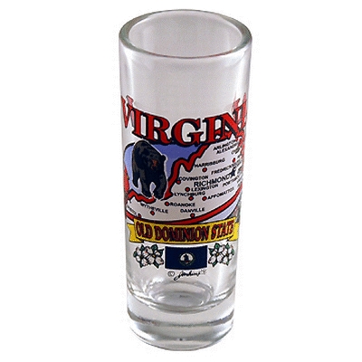 Collectible Virginia souvenir 2 ounce glass shooter with classic state outline design. Best seller! 12 pieces in an inner 144 per case.