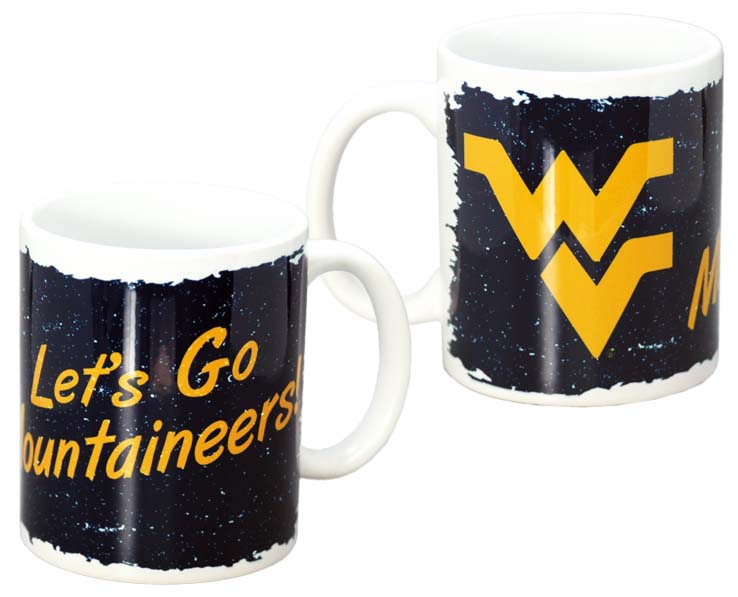 Officially Licensed Product. West Virginia Mountaineers 11 ounce ceramic mug printed with our all new rugged torn design featuring team name and mascot. 6 pieces in an inner pack 36 per case.