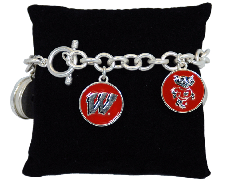 WISCONSIN BADGERS BRACELET TOGGLE 5 DISC SNAP ON