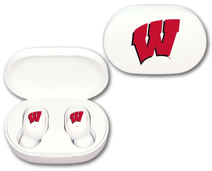 WISCONSIN BADGERS MEDIA EARBUDS WIRELESS LOGO