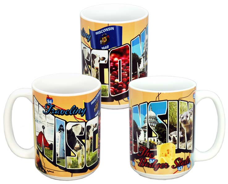 Collectible Wisconsin souvenir Full color wrap around art on a 15 ounce ceramic mug. Not dishwasher or microwave safe. 6 pieces in an inner pack 36 per case.