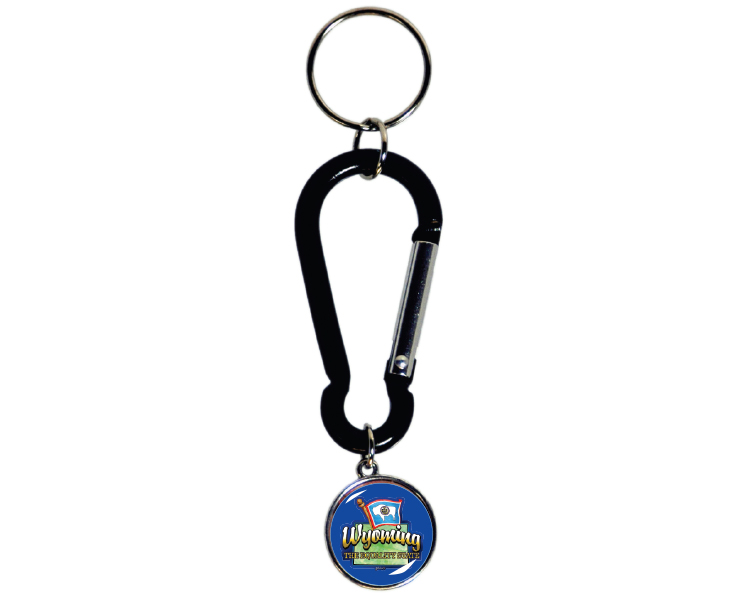 WYOMING KEYCHAIN CARABINER DOMED MAP/FLAG